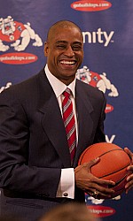 He's the basketball coach for some college. Graduated years ago, like in the 80's.